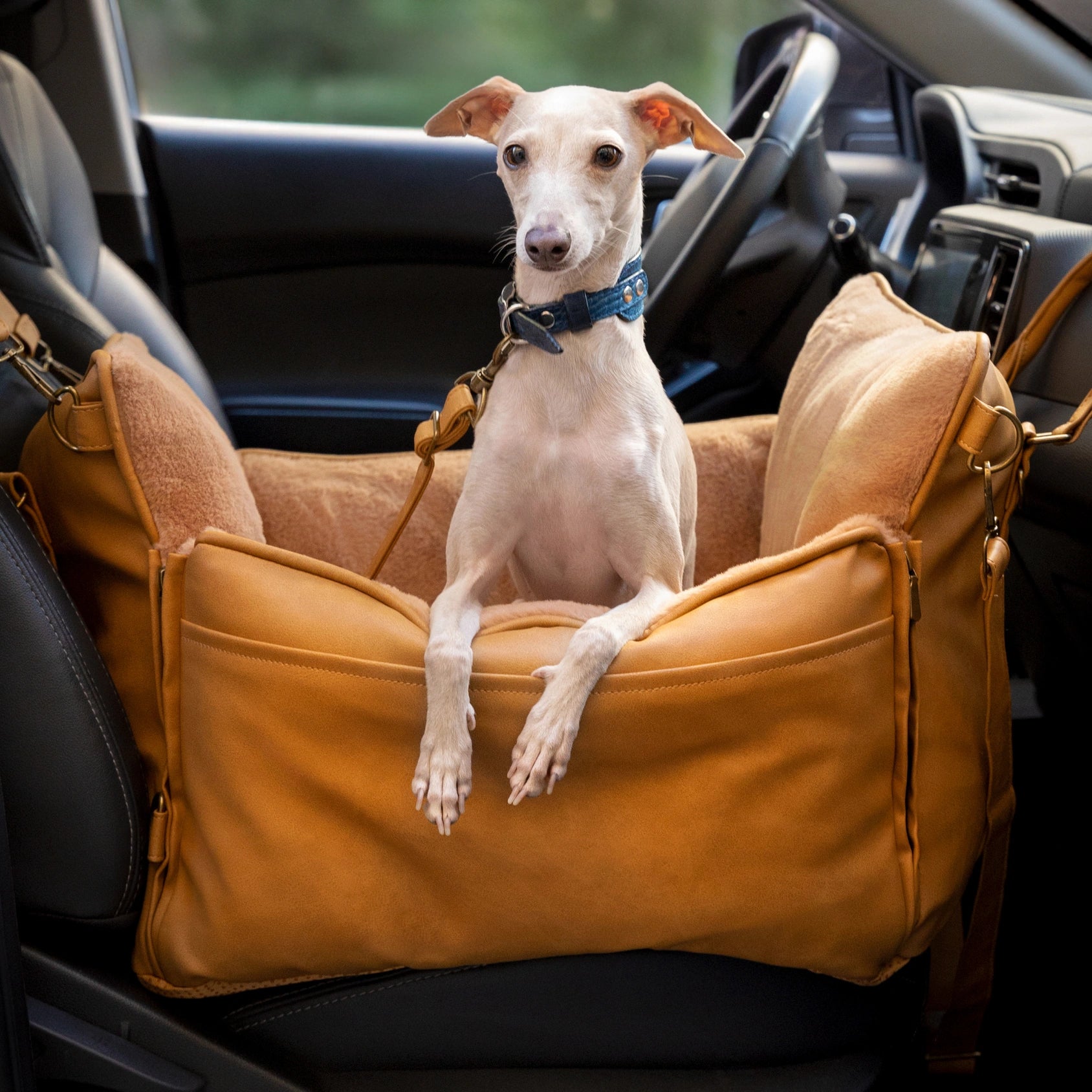 My 4.5 lb baby toy poodle actually prefers this bag to his leash, especially in busy areas. I attach the ring to his harness for extra security, and he can stay in it with his car seat for a fast exit! The fur lining is comforting for Albert, and easy to clean for me! Love the leatherette exterior and pocket, strap is comfortable & allows me to actually work with my puppy. My 4.5 lb baby toy poodle actually prefers this bag to his leash, especially in busy areas. I attach the... My 4.5 lb baby toy poodle actually prefers this bag to his leash, especially in busy areas. I attach the ring to his harness for extra security, and he can stay in it with his car seat for a fast exit! The fur lining is comforting for Albert, and easy to clean for me! Love the leatherette exterior and pocket, strap is comfortable & allows me to actually work with my puppy.
